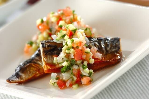 玉ネギやパセリ、トマトなどをお酢やオイルでマリネしたラビゴットソースを塩サバにかける、おしゃれなレシピ。「ラビゴット」とはフランス語で元気を回復するという意味です。塩サバのラビゴットソースを味わって、暑い日に元気をチャージしましょう。