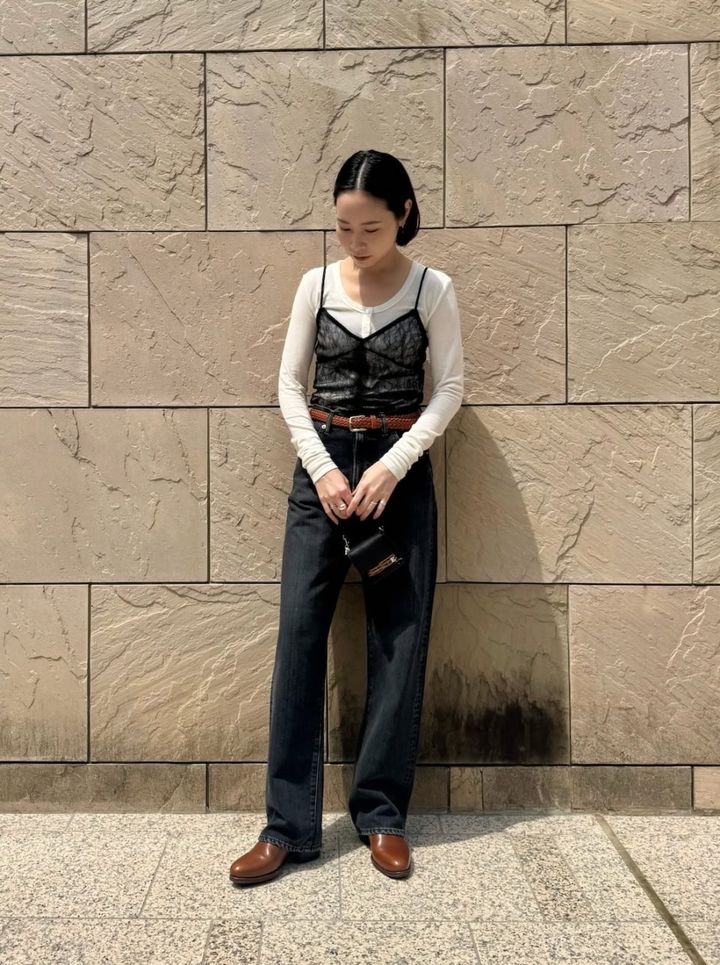 3. 【デニムスナップ】腰高美脚デニムはレースキャミで上品に!|川又那菜子さん