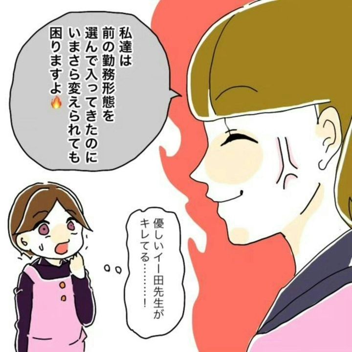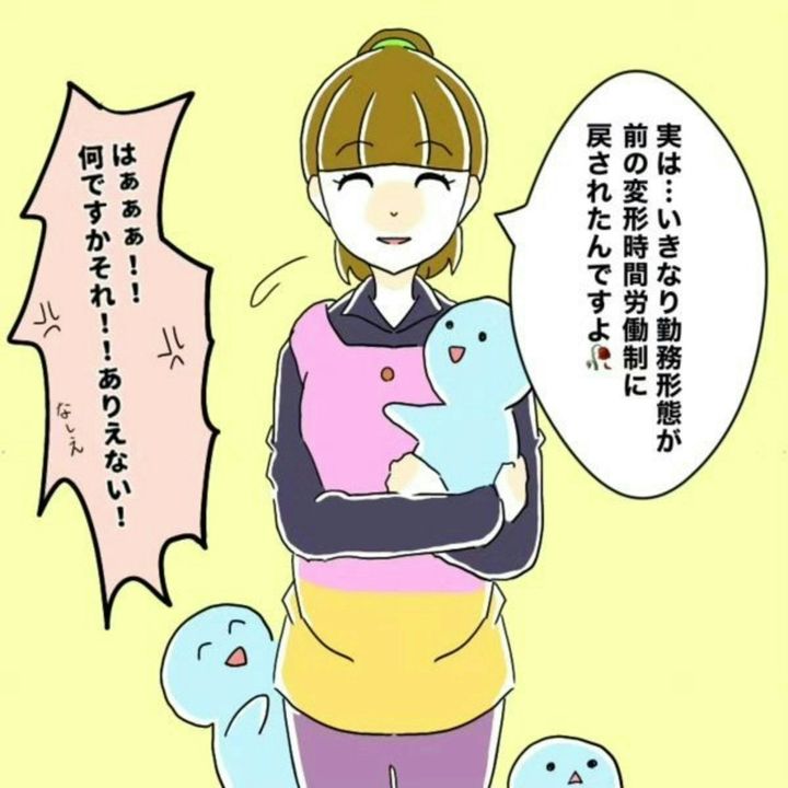 ワンマン社長の突然の指示で、保育士たちの勤務形態が変わってしまいました…。変更前の勤務形態を選んで入社した保育士たちは納得がいきません。また、給与にも大きく関わってくる内容です。