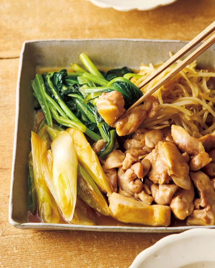 『小松菜、もやし、ねぎと 鶏肉のすき煮風』で、野菜をおいしく効率よく摂取しちゃいましょう♪