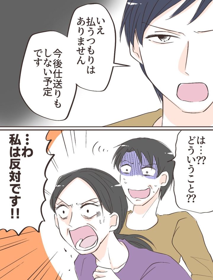海外転勤に行くことになり、マサミさんに一緒に来てもらいたいとケイスケさんが言うと、「今後の援助はどうなる!?」「リュウの塾代ケイスケさんが払ってくれんのかよ!?」お母さんとカズキさんが責め立てたところ、「いえ、払うつもりはありません。今後仕送りもしない予定です」真剣な表情でケイスケさんが答えると、「は・・??どういうこと??」愕然とするカズキさんと、「・・わ、私は反対です!!」と大声を出すお母さんは、