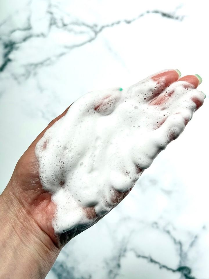 【使い方】顔全体を少し湿らせ、空気とぬるま湯を含ませながらふわふわ泡立て、泡で顔を包むように優しく洗い、ぬるま湯でオフ。