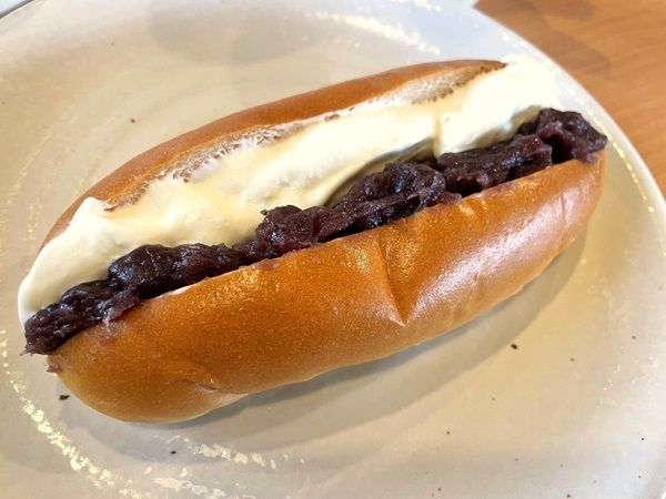 そんな中でも注目は、ふっくら焼き上げたコッペパン3種類。「ホットドッグ」「たまごサラダ」、そしてこちらが「あんこクリーム」(いずれも500円)。ワンハンドで食べられるので時間がないときにも重宝しそうですね。