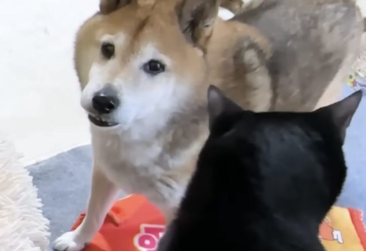 猫さんの姿が見えないとすぐ探す! いつも気にかける優しい柴犬さん