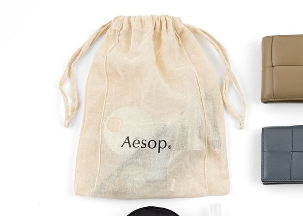 3 ポーチはこまめに洗いたい派なので、Aēsopの巾着ポーチが重宝。
