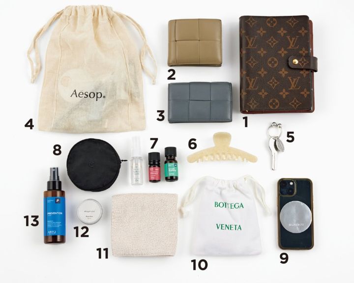 9 喉が弱いので、キャンディやミントは常備。ボッテガ・ヴェネタの巾着ポーチに入れています。