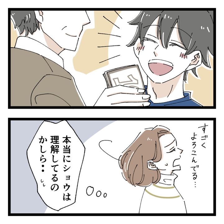 好きな子にハイブランドの財布をプレゼントするから足りない分のお金を貸してくれとショウくんに言われ、お父さんに相談したところ、あっさりOK!「反対しないの?3万って高額だよ?」と言うと、「ん~、好きな子に何かしてあげたいって気持ちはわかるし。その子がここまで要求するようになったのは、ショウにも責任があるんじゃない?」お父さんにそう言われ、「つまり・・どういうこと?」お母さんがたずねました。