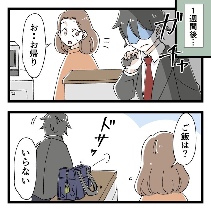 学校から帰ってきたショウくんは、うつむいて何だか暗い雰囲気。「お・・お帰り。ご飯は?」とお母さんが声をかけるも、「いらない」そう言って自分の部屋に行ってしまいました。