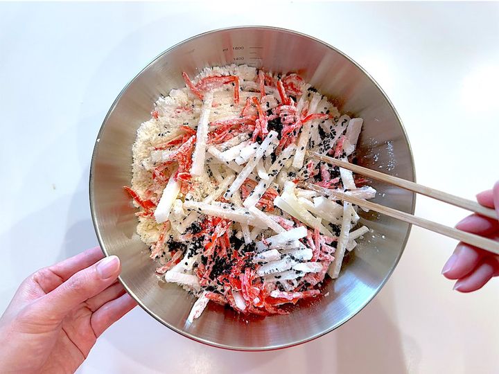 3. 大根から水分が出て、全体がほどよくまとまるまで5分ほど置く。