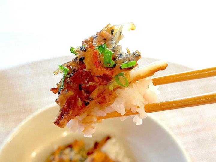 うん!ご飯のふんわりやわらかな食感と、かき揚げのカリッサクッとした食感が絶妙で、箸が止まりませ〜ん!