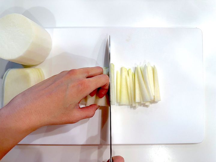 1. 大根をマッチ棒よりやや太めの千切りにする。