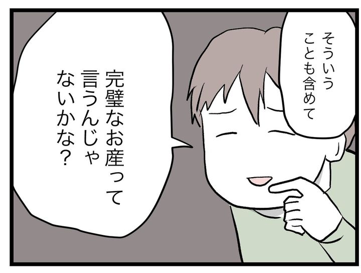 ・すばらしいねー、旦那。ド正論。そもそも自分の頭の中で思い描いている「完璧なお産」って何? 生き物にセオリー通りに事が運ぶわけじゃないだろーに。
