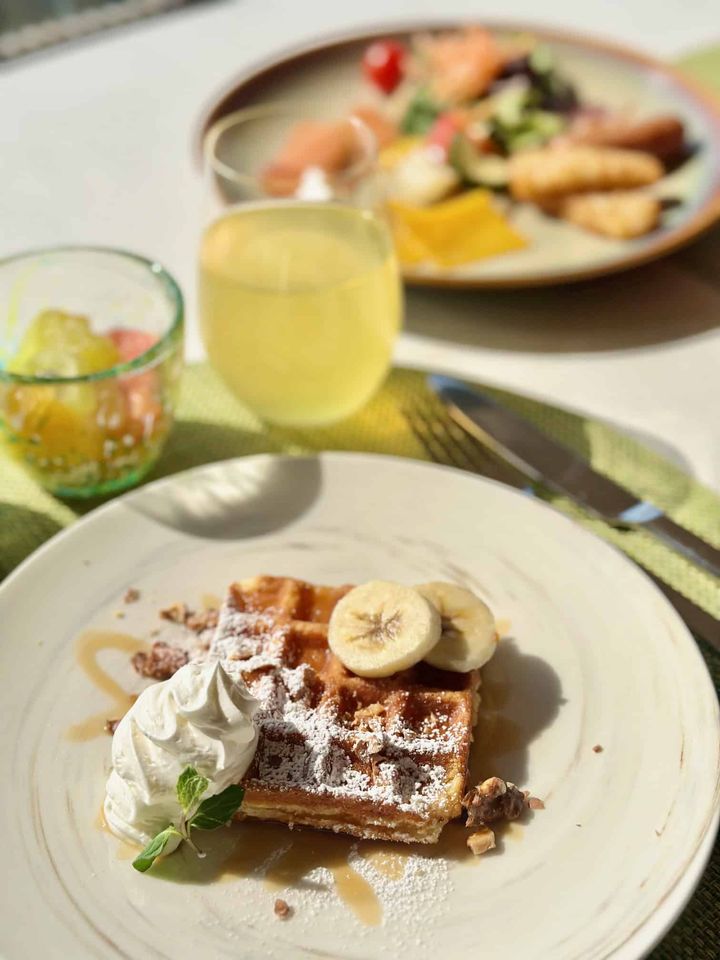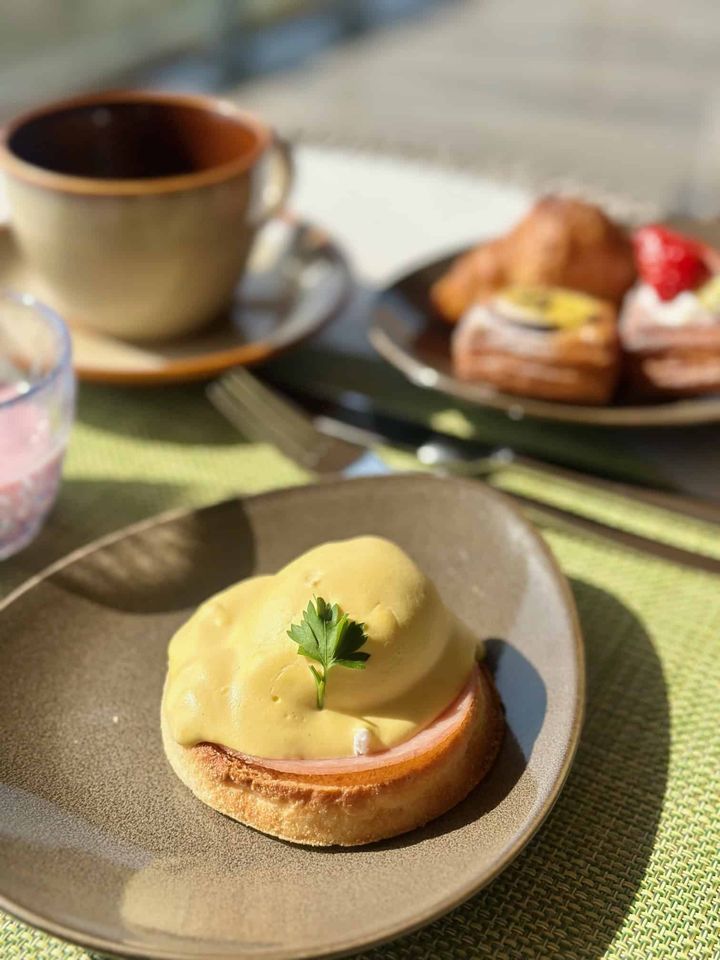 「エレメンツ」には広いテラスもあります。朝の静けさの中、美しい光景を眺めながらいただく朝食は爽快感たっぷり!好みの卵料理を選べるセミビュッフェスタイルなので、その日の気分に合わせて選べます。