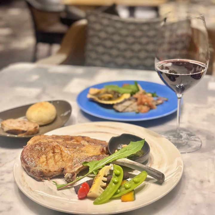メインディッシュ「米の恵み豚のトマホーク ジェノバソース」