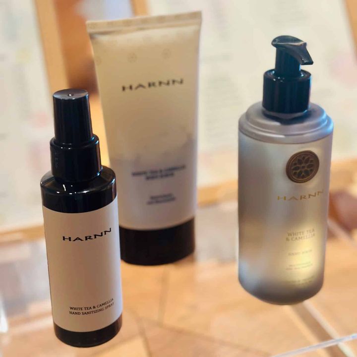 ハーンのコレクションはスパ内で購入可能。ボディ&ヘアケア、ハンドクリーム、オーガニックライスブランソープ、バーム、マッサージ&バスオイルなど様々ンアイテムが揃います。