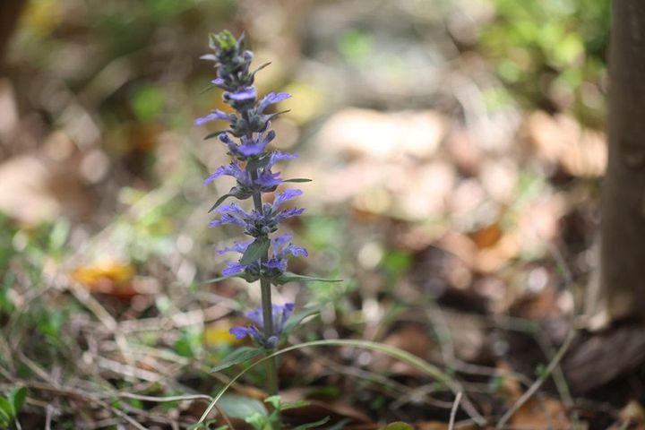足繁く通う散歩道の桜もいつの間にか葉桜になり、新緑の眩しい季節になりました。我が家の庭でも越してきた時に植えたアジュガが春の日差しを浴びてきらめいています。