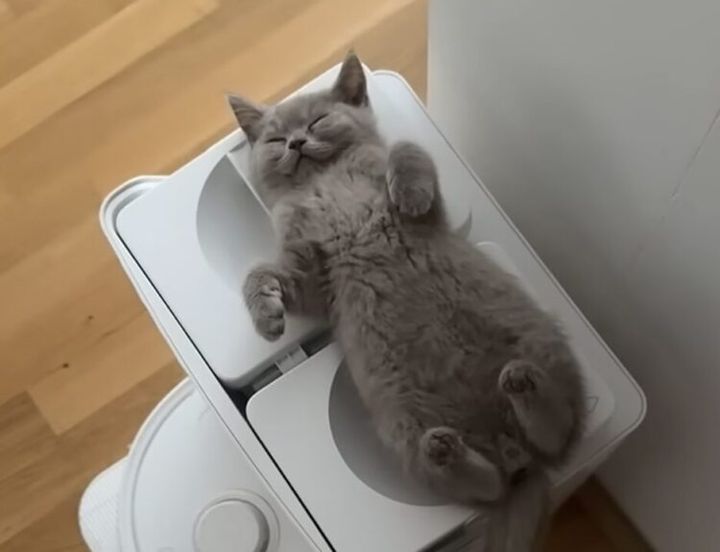 3. そこ掃除機の上だよ? 猫さんの無防備すぎるお昼寝姿