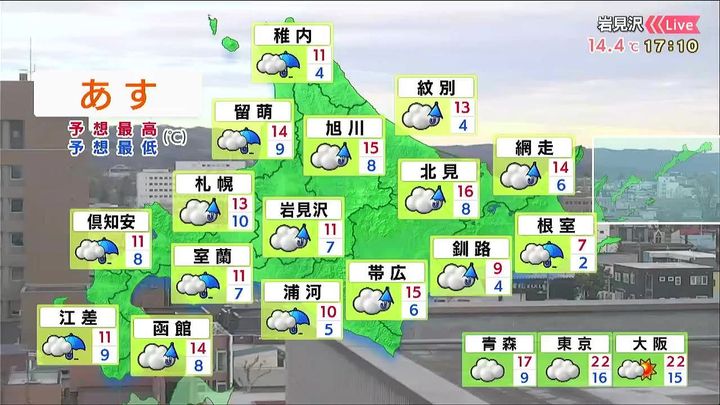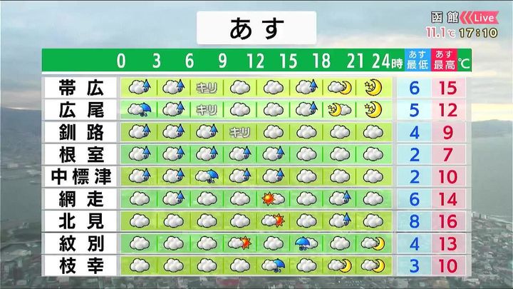・あすの北海道の天気と気温