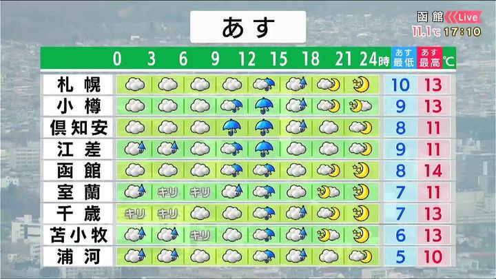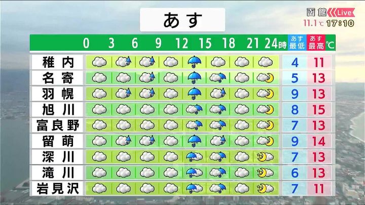 ・あすの札幌の朝昼晩の天気