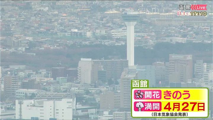 函館の五稜郭公園は少しピンクになっているように見えます。函館ではきのう23日(水)サクラの開花が発表され、日本気象協会によると27日(日)が満開の予想です。