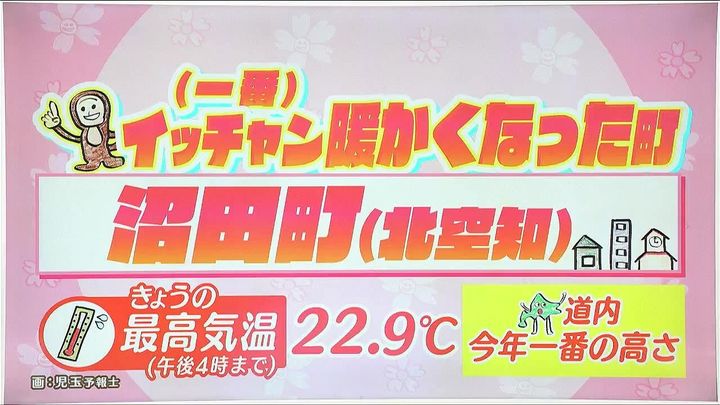 こちら!イ~チャン暖かくなった町です。きょう24日(木)の最高気温は22.9度まで上がり、道内のことしの最高気温を更新しました。