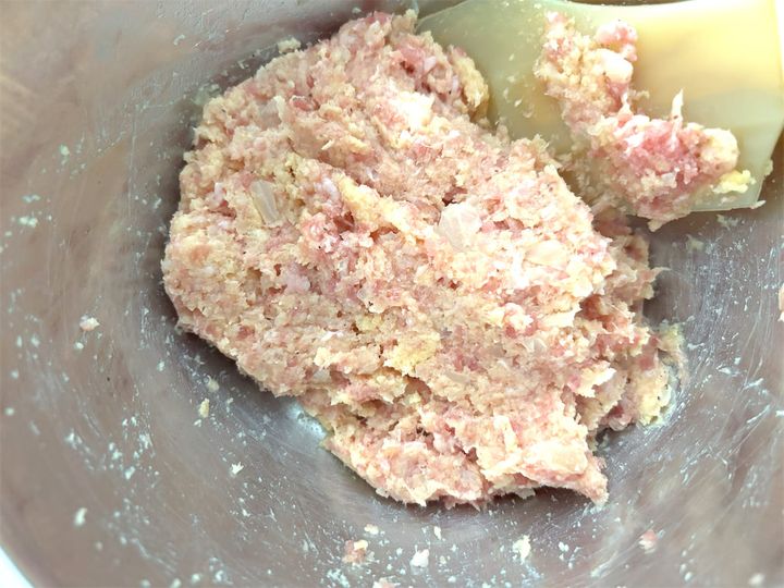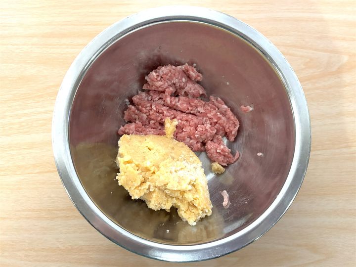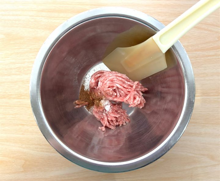 紹介していたレシピにひき肉の種類の記載がなかったので、今回のひき肉は「牛豚合い挽き」のものを使用しています。
