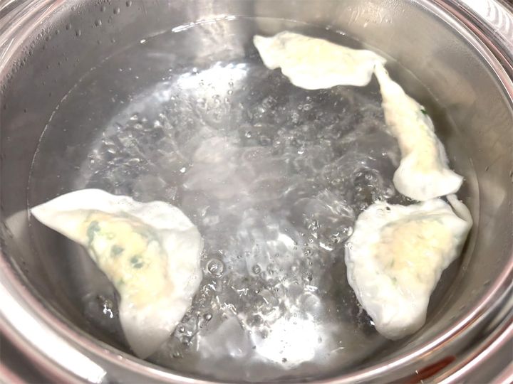 茹でているので、つるっとした食感になった餃子の皮が、とってもおいしいです♪