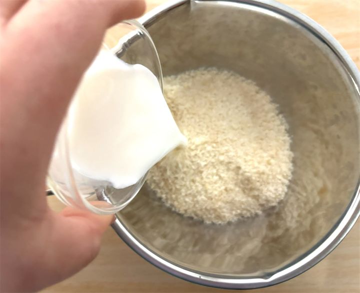 パン粉と牛乳を混ぜ、よく混ぜてなじませます。