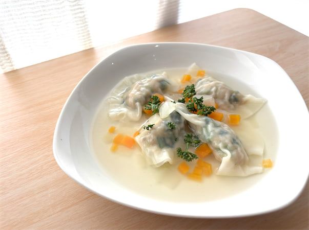 みんなで作ると楽しい餃子!薄い皮にひき肉や野菜で作った餡を入れて包んで、焼いたり茹でたりしたら…とってもおいしいですよね♪だけど、餃子って「焼いたり」「茹でたり」以外の食べ方ってないのかな?そう思ってレシピを色々探してみると、イオンのSNSで不思議な料理を見つけました。見た目は水餃子みたいな「マウルタッシェン」。実はドイツの伝統的な家庭料理なんだそう。では餃子では…ないのね⁉いったいどんな料理なんでしょう。気になるので作ってみよう!