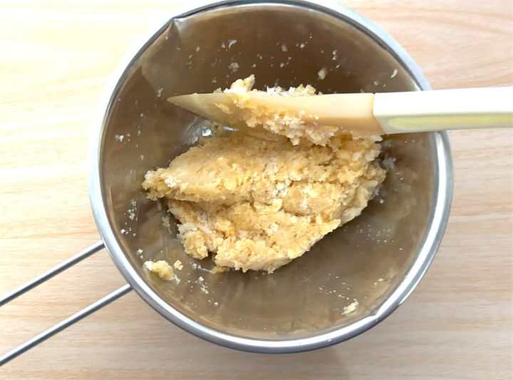 しっかり練るように混ぜると、下の画像のような状態になります。