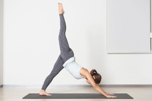 1日中“座りっぱなし”で“運動不足”という状態が続くと、いつの間にか代謝が低下して下半身に贅肉がつきやすくなっていくもの。そんな方にこそおすすめの簡単エクササイズが、下半身の引き締め効果が高く全身運動にもなるヨガの簡単ポーズ【エーカパーダ・アド・ムカ・シュヴァナーサナ】です。ヨガの基本ポーズ「ダウンドッグ」の姿勢から、片脚を思い切り上に伸ばすだけなので、初心者にも実践しやすいのも魅力です。
