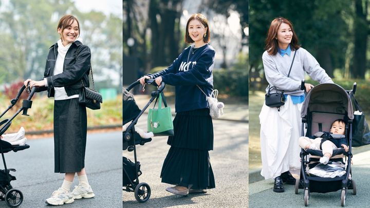 お子さんとお出掛けの日は、動きやすいスウェットが頼りになりますよね。“オシャレしてる感”が出るスカートを合わせると、ラフさが抑えられてキレイめな雰囲気に。5名のママに着こなしのポイントを教えてもらいました。
