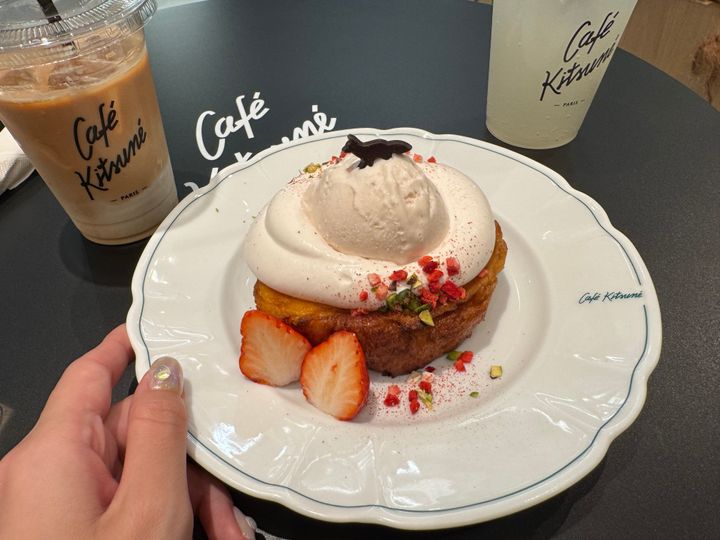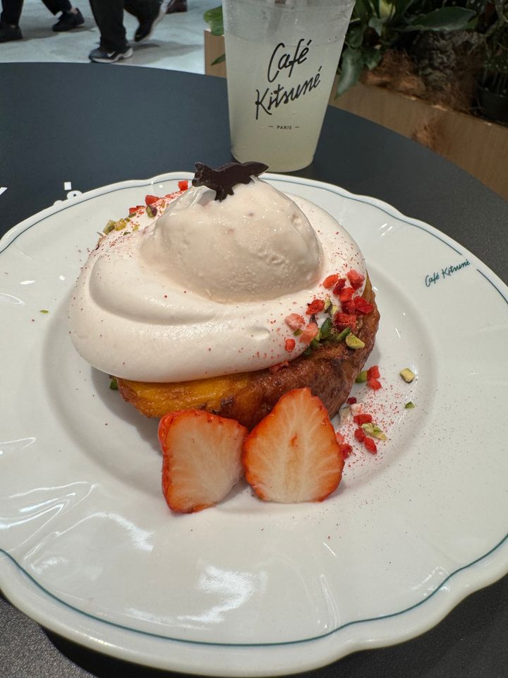 ふわふわのトーストに濃厚なアイスクリームが乗っていて軽めのクリームでいちごみるくのようは味わいでした🍓🍼