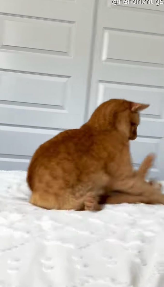 背後で何かがニョロニョロ動く気配を感じたネコ。 この子が必死になって捕まえようとするその相手というのは・・・、自分のしっぽでした!?