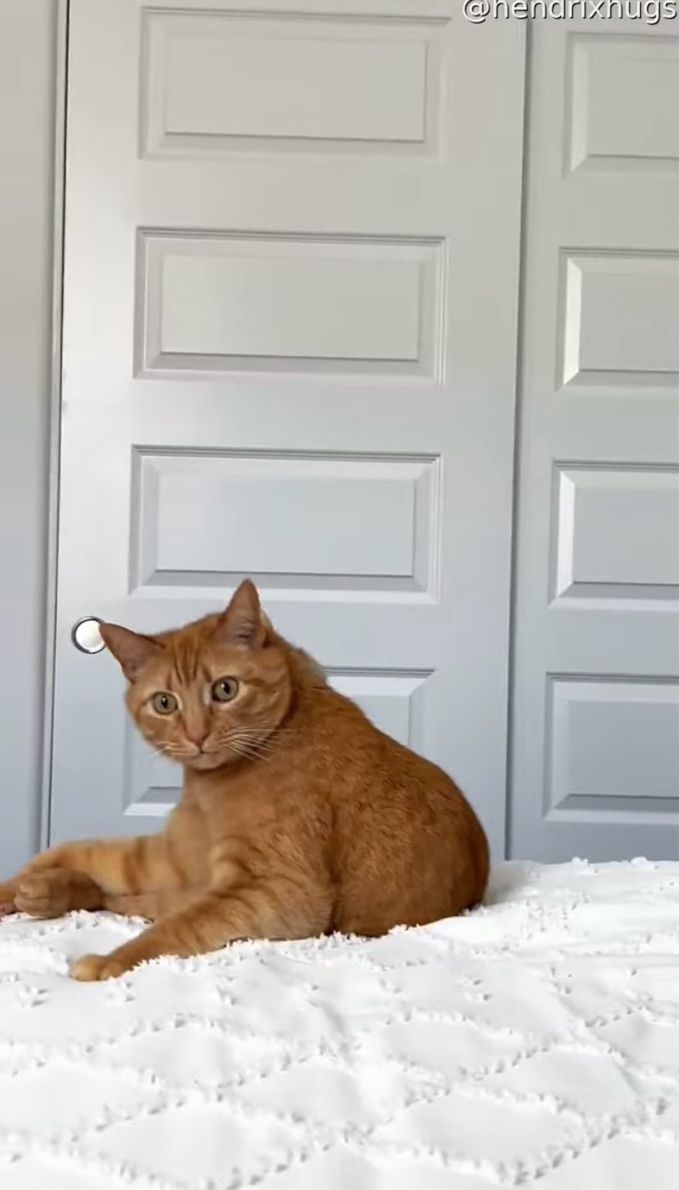 ベッドの上にお座りしていたネコの『ヘンドリックス』。