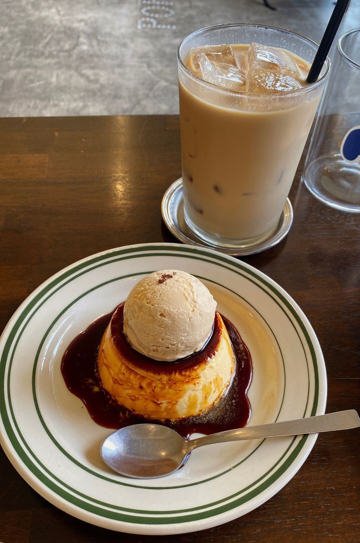 そしてプリンは上に自家製のコーヒーアイスが乗っており