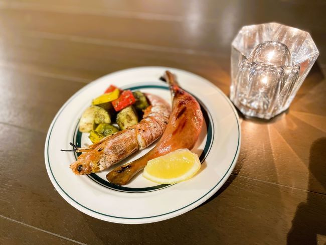 さらに、殻付き赤海老を塩とレモンで仕上げる「赤海老のグリル」プリップリで塩とレモンが効いてて、もうビールが止まらない!
