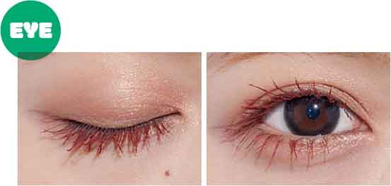 それだけでも存在感抜群なので、目元はカラーマスカラオンリーで。