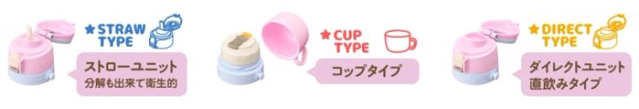 ストロータイプ、コップタイプ、ダイレクトタイプの3通りのユニットつき