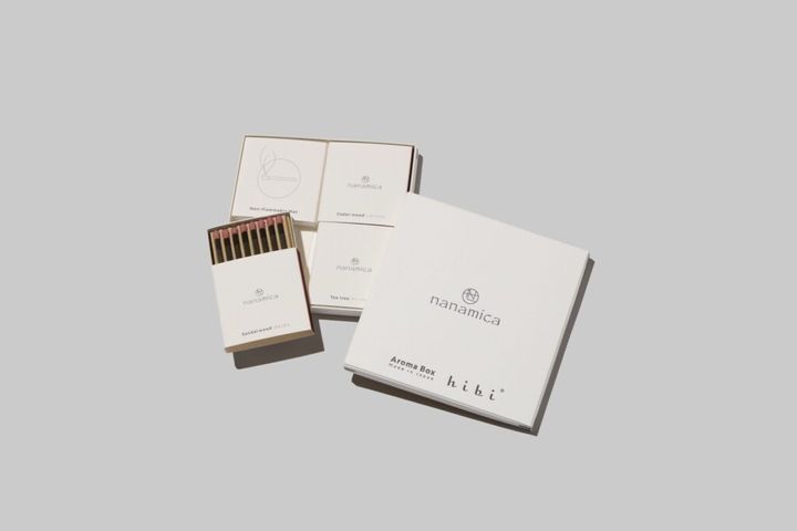 マッチを擦るように火をつけて、自然の香りを楽しめる、hibi のお香 3 種が入ったギフトボックスセット。「nanamica × hibi Incense Gift Box Novelty」 *¥12,000(税込)以上購入した人にのみプレゼント。なくなり次第終了。
