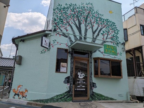 お店があるのは、高槻市の132号線沿い。この道路沿いに、突如現れるゴリラをはじめとするかわいい動物たちのイラスト。実はこれ、人気絵本作家・谷口智則さんが直接描かれた壁画なんです。
