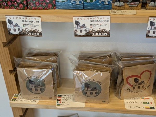 ドリップバッグコーヒーは5袋1000円、3袋600円