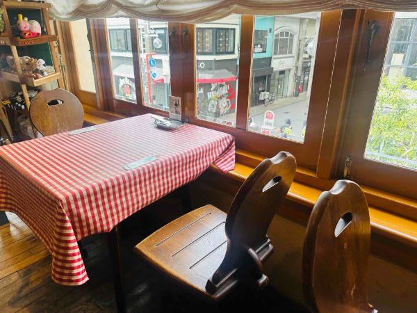 チェック柄のテーブルクロスと木枠の窓が、まるでイタリアの小さな食堂にいるような気分にさせてくれます。