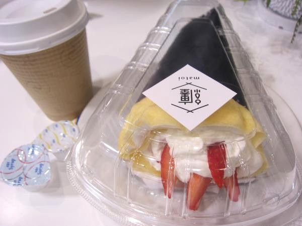 イートインスペースで、コーヒーと贅沢クレーㇷ゚いちごを食べました。