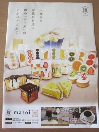 お店の前を通ったら、外から美味しそうなフルーツサンドが並んでいるショーケースが見えて、引き寄せられるように店内に入ってしまいました。福島駅東口にある、フルーツサンドやスイーツのお店「纏‐matoi‐」さんです。