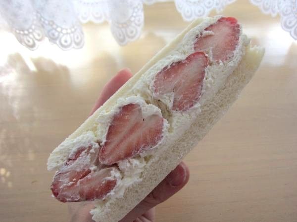 いちご。可愛いハートのカット面のいちごが並んでいます。カット面だけじゃなくて、中にもいちごとクリームがたっぷりでした。クリームチーズ仕立てのさっぱりクリームなので、食べやすいですよ~。