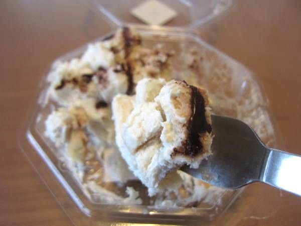 ミミクリーム。パンの耳にクリームがたっぷり絡んでいて、チョコソースがかかっています。