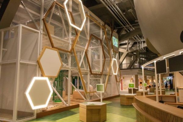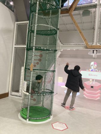 シンボルの「ためしてハニカム」はネットのトンネルをくぐって上に登ることができます。日本最大級の科学体験ジャングルジムとはどういうこと?と思ったのですが、どうやら子供も大人も夢中にになってしまう仕掛けが盛りだくさん。科学を学べる体験装置がたくさんあり、「からだ」と「あたま」を使って楽しめちゃうんです。