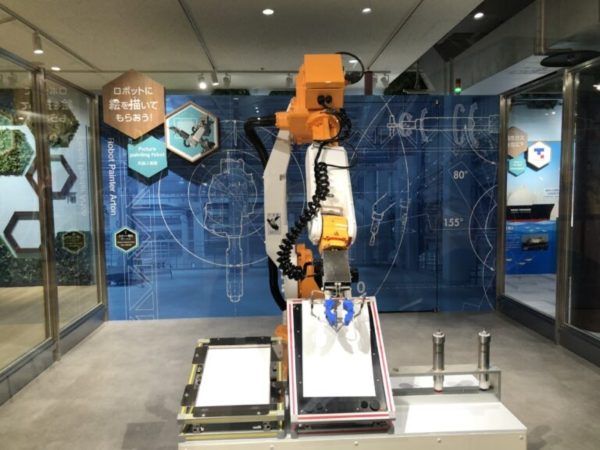 お絵描きロボットが絵を描いてくれ、それをもらうことができます。