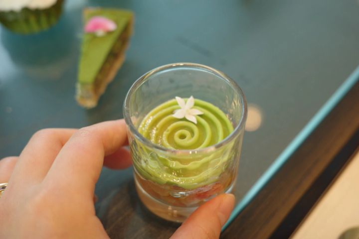 なかでも特に心に残ったのがこちら。宇治抹茶とココナッツを使用したスポンジケーキの表面に、抹茶と合わせたココナッツをまぶしたスイーツ。シャリっとした口あたりが新鮮!抹茶とココナッツの風味が絶妙で、甘すぎず何個でも食べれそうなお味でした。苔玉のようにふわふわした見た目もとってもかわいいんです♡